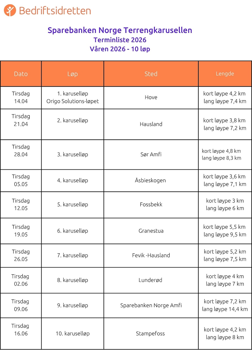 Terminlisten for Sparebanken Sør Terrengkarusell